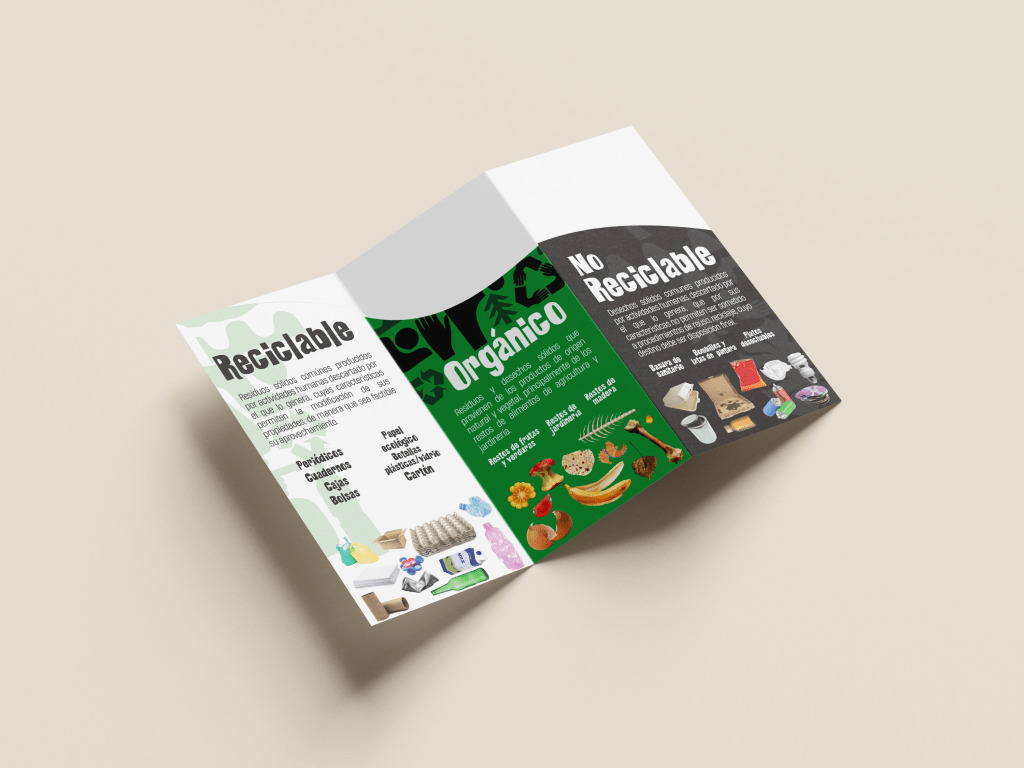 Campaña para nueva ley de clasificación de residuos y desechos comunes en Guatemala. Señalética para y trifoliar informativo sobre la clásificación y reciclaje.